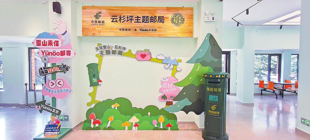 云南省丽江市玉龙雪山云杉坪主题邮局于今年9月12日亮相后,就吸引诸多游客到访,国庆中秋假期更是人流如织。主题邮局宛如一颗璀璨的明珠,镶嵌在海拔3240米的云杉坪索道下部站,背靠着巍峨壮丽的玉龙十三峰,仿佛雪山忠诚的守护者;面朝繁花似锦的高山草甸与静谧神秘的原始云杉林,宛如置身一幅绝美的画卷之中。