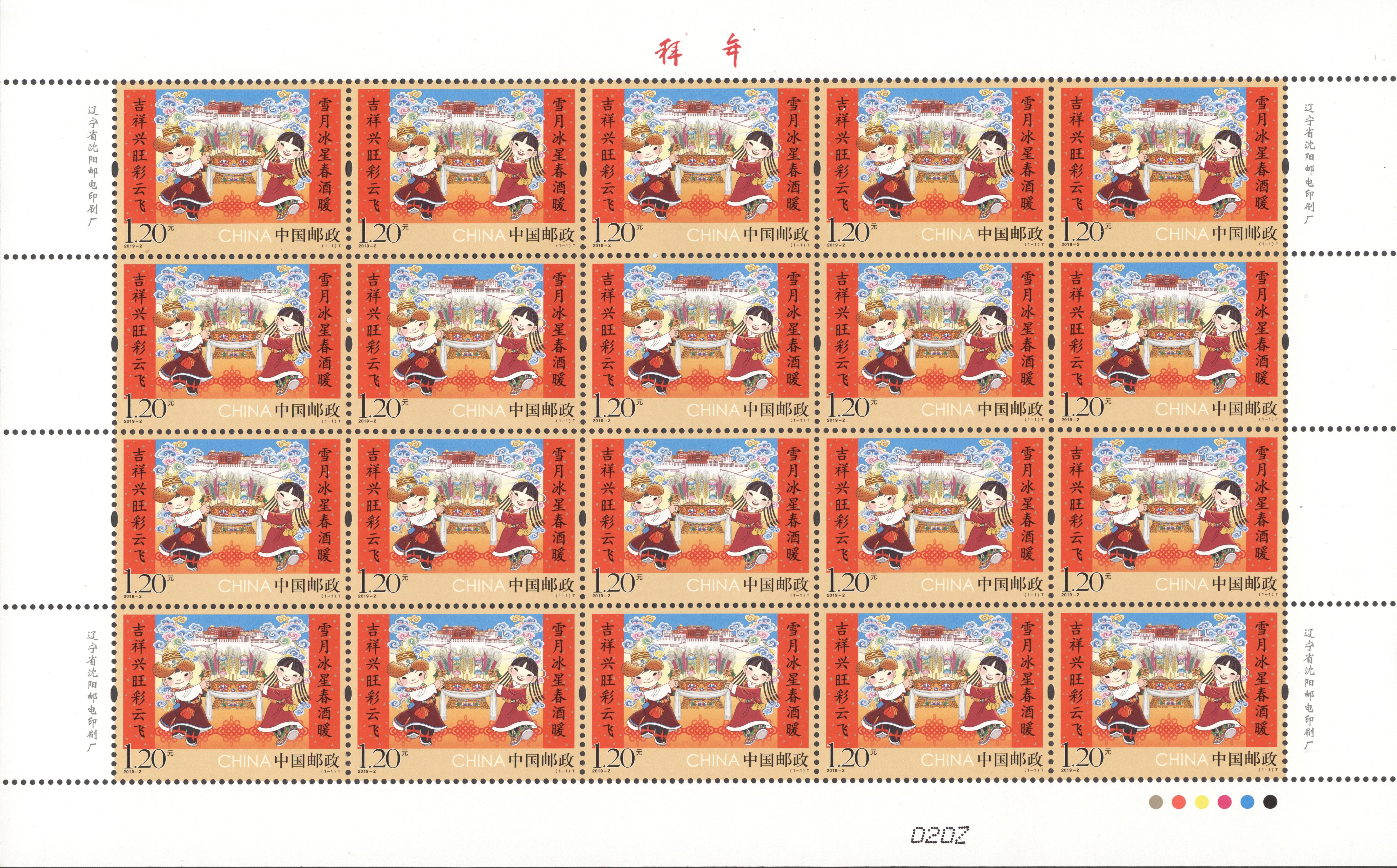 中国是一个团结统一的多民族国家,拜年邮票设计延续上一年与少数民族元素相结合的创意,表达全国各族人民在中国共产党的领导下,幸福生活,共筑中国梦的美好寓意。