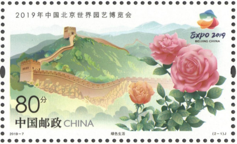 中国邮政定于2019年4月29日发行《2019年中国北京世界园艺博览会》纪念邮票1套2枚,邮票图案名称分别为:绿色生活、美丽家园,全套邮票面值为2元。