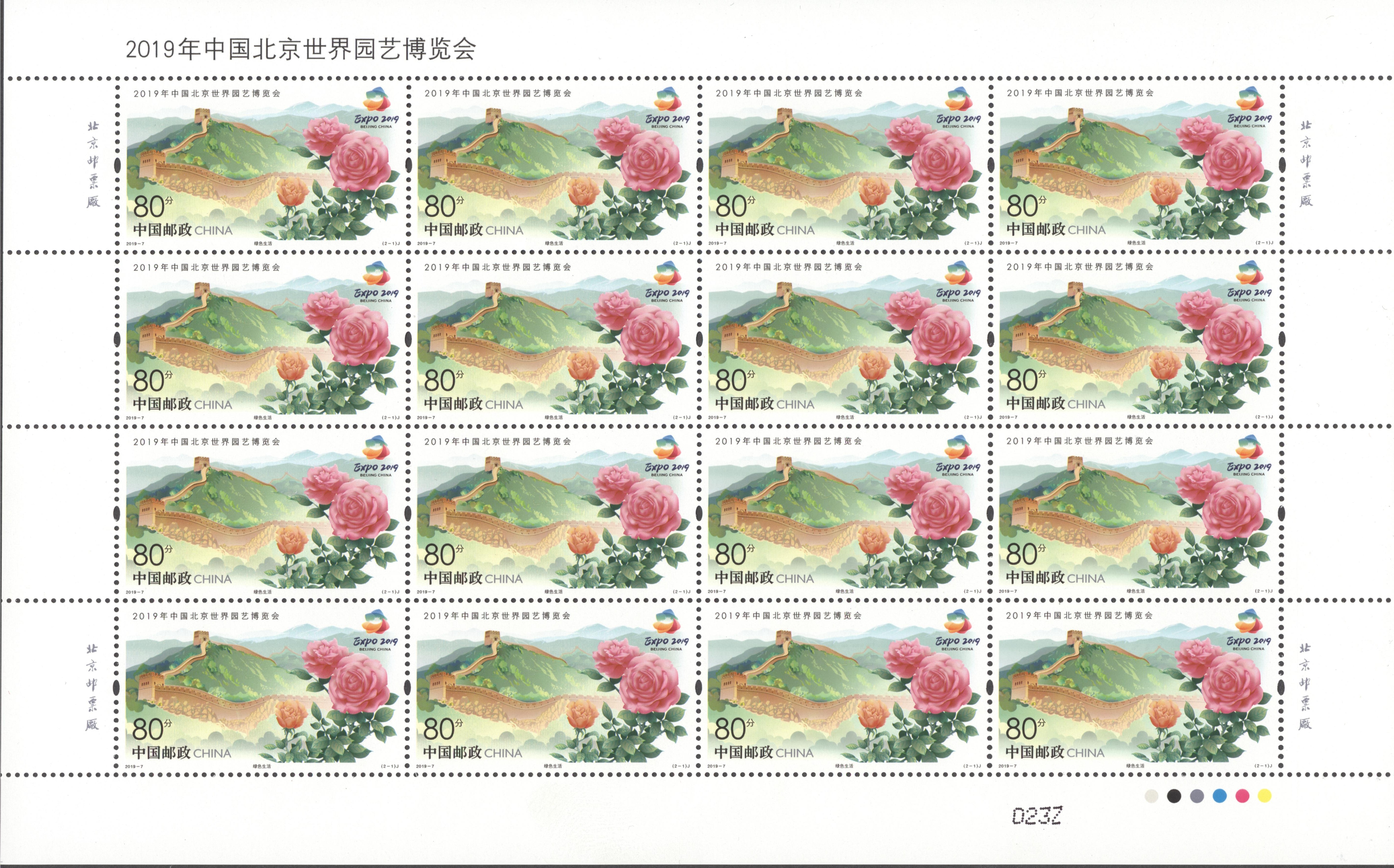 中国邮政定于2019年4月29日发行《2019年中国北京世界园艺博览会》纪念邮票1套2枚。详情如下: