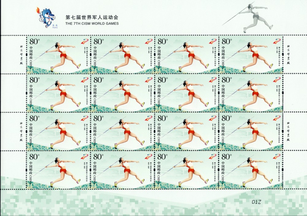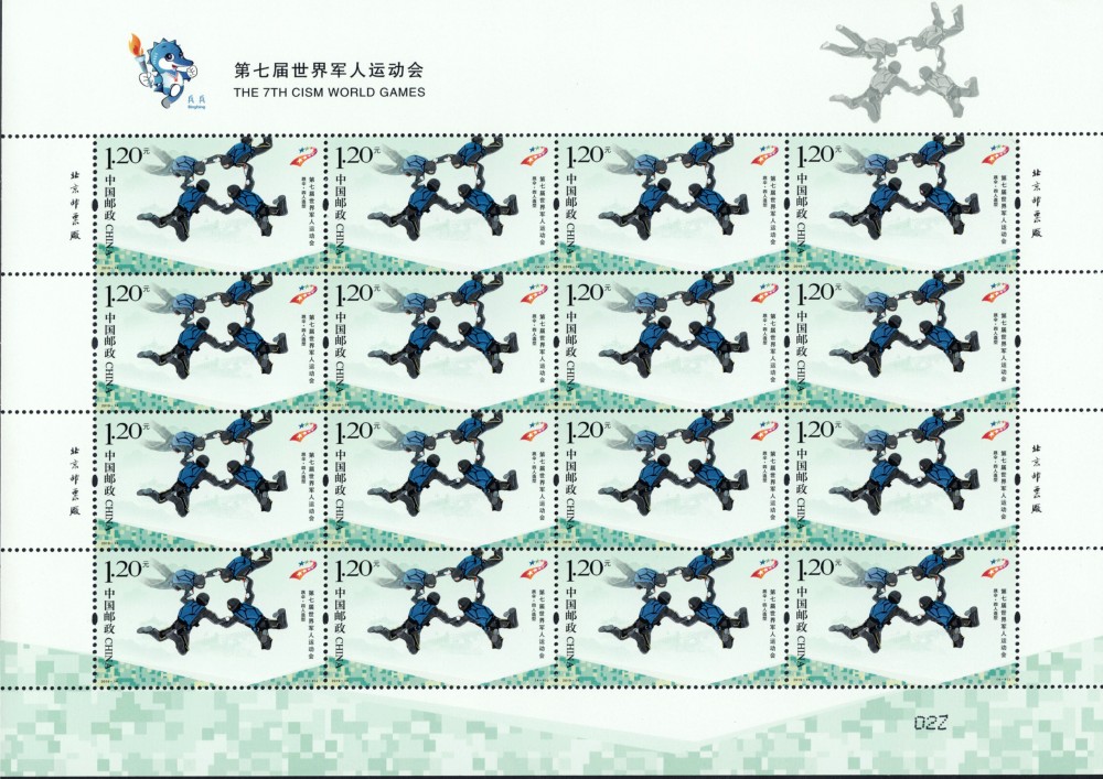 中国邮政定于2019年7月10日发行《第七届世界军人运动会》纪念邮票1套4枚,全套邮票面值为4元。