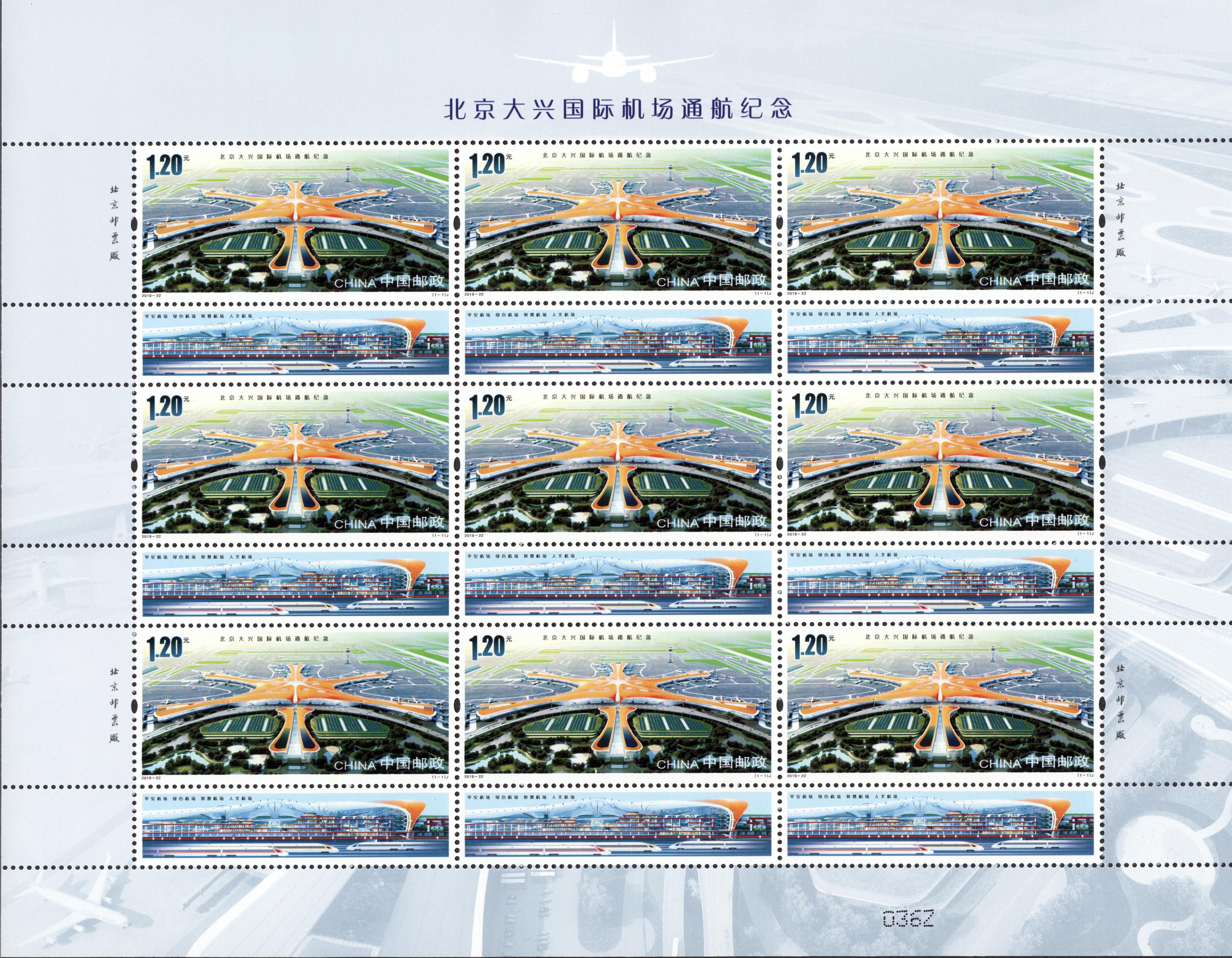 中国邮政定于2019年9月26日发行《北京大兴国际机场通航纪念》纪念邮票1套1枚,全套邮票面值为1.20元。