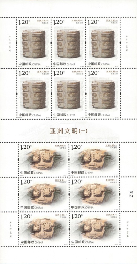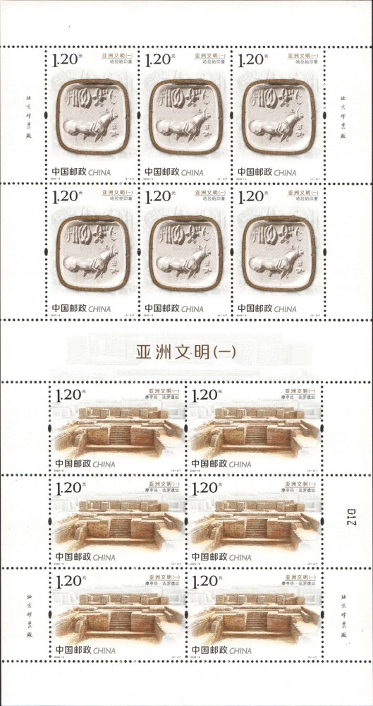 璀璨的亚洲文明,为世界文明发展史谱写了浓墨重彩的篇章,人类文明因亚洲更加绚烂多姿。6枚邮票分别选取了底格里斯河-幼发拉底河,印度河-恒河,黄河-长江等流域的古代文明的代表性遗址和文物。