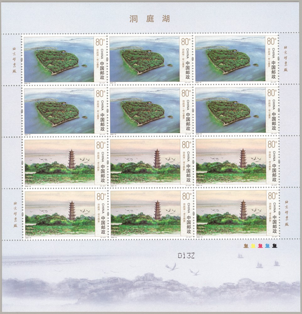 中国邮政定于2022年5月28日发行《洞庭湖》特种邮票1套4枚,小型张1枚。详情如下: