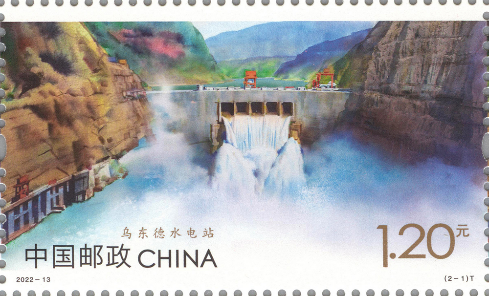 邮票第1图“乌东德水电站”位于云南省禄劝县和四川省会东县交界的金沙江干流上,是世界第七、中国第四大水电站,2020年6月29日首批机组投产发电,2021年6月16日全部机组投产发电。第2图“白鹤滩水电站”位于四川省宁南县和云南省巧家县交界的金沙江干流上,2021年6月28日首批机组投产发电,将于2022年完工,建成后将成为仅次于三峡水电站的世界第二大水电站。两座水电站是党的十八大以来我国开工建设并建成投产的装机规模最大的两个能源基础设施工程,是国家实施“西电东送”战略、优化能源结构的重要骨干工程,与溪洛渡、向家坝、三峡和葛洲坝水电站构成了世界最大清洁能源走廊,为我国经济社会绿色发展提供了强劲动能。