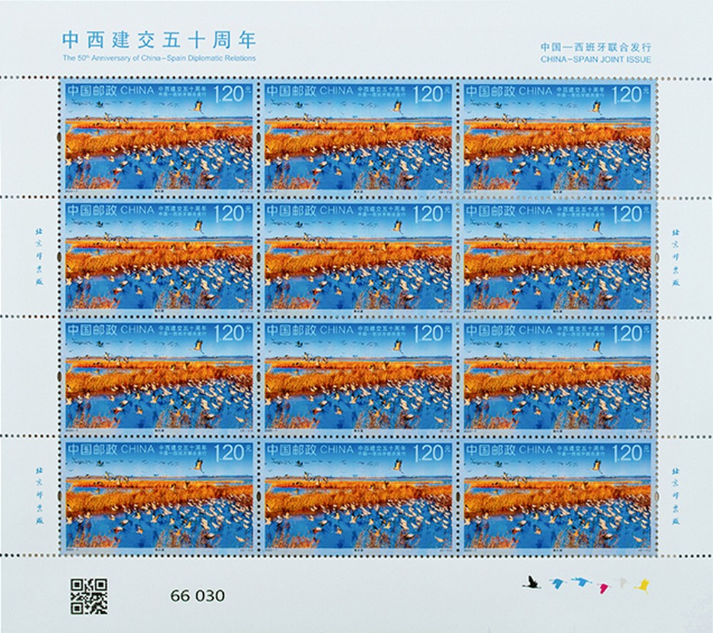 2023年是中西建交50周年,邮票画面以摄影作品为基础,表现了中国的衡水湖与西班牙的富恩特皮埃德拉湖,展现出两国湖泊的旖旎风光和自然生态特征,画面构图简约明快、表现意境清朗优美。西班牙邮政将使用同样的设计元素发行以“中西建交五十周年”为主题的邮票。